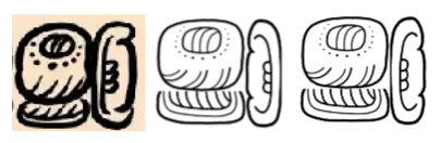 Studying Memo Kantun’s Ritual de los Bacabes led me to a bug in the app. The image shows Memo’s “bakana”, the app’s earlier rendering, and the corrected version. In the older output, the right-side affix glyph was incorrectly oriented relative to the main glyph. This bug affected a lot of writing.